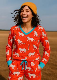 Joy in repeat. Be that long bath soaks, even longer beach days or daily wild swims in the great outdoors. Inspired by the great outdoors and made from super soft, 100% organic cotton, towels feature striking snow leopard motifs on a bright blue background.