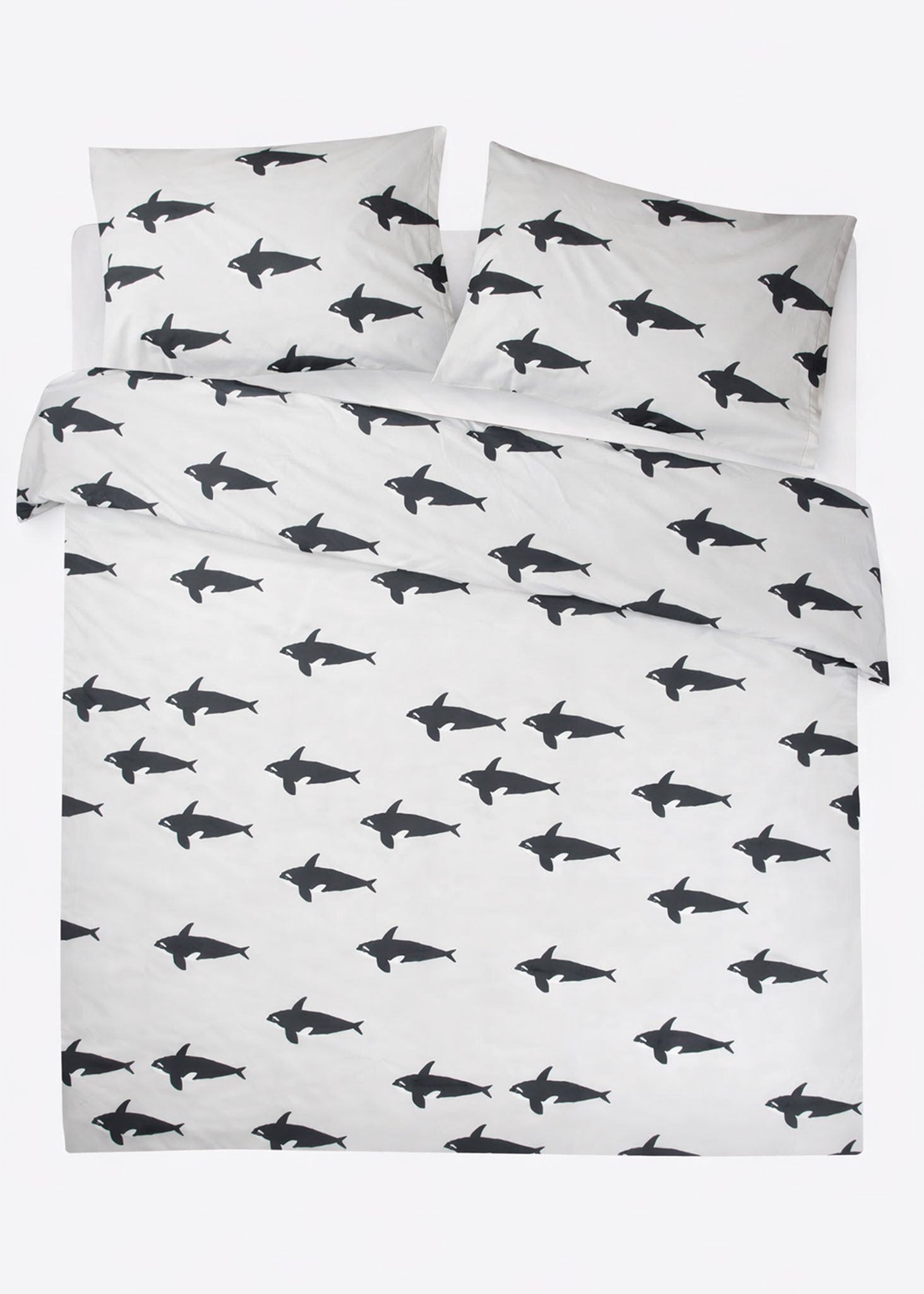 From beach to bedroom, our Sea Life collection is a celebration of our oceans. In soft pastel shades and even softer 200 thread count organic cotton, you can breathe the sea air then drift to sleep in complete cosy comfort with our duvet sets. Our Orca bedding sets feature striking monochrome killer whale motifs on one side of the duvet cover, whilst contrasting Wave print adds an element of surprise on the reverse. And what's more, all of our super quality bedding is made from 100% cotton and has an easy care finish to make duvet ironing a doddle.